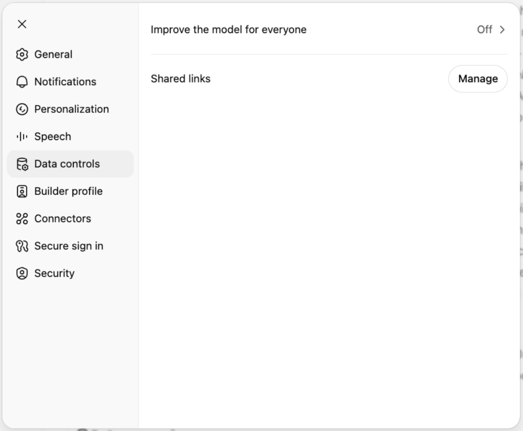 เมื่อสร้างบัญชี ChatGPT ระบบจะเปิดฟีเจอร์ “ช่วยปรับปรุงโมเดลสำหรับทุกคน” (Improve the model for everyone) โดยอัตโนมัติ หลายคนไม่ได้สังเกตหรือไม่เข้าไปตรวจสอบการตั้งค่านี้ นั้นหมายความว่าการตั้งค่านี้จะทำให้ สิ่งที่คุณแชทกับ AI อาจถูกนำไปใช้ฝึกโมเดล AI