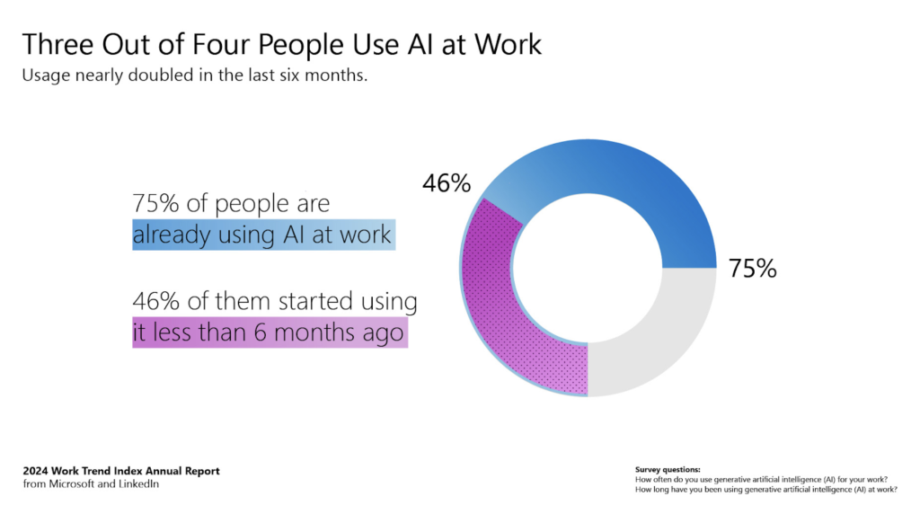 งานวิจัยล่าสุดจาก Microsoft และ LinkedIn (2024 Work Trend Index Annual Report) พบว่า พนักงานกว่า 70–85% ต่างก็ “Bring Your Own AI” (BYOAI) หรือการนำ AI ส่วนตัวมาใช้ในการทำงาน แม้เครื่องมือนั้นจะไม่ใช่สิ่งที่องค์กรจัดหาให้ก็ตาม